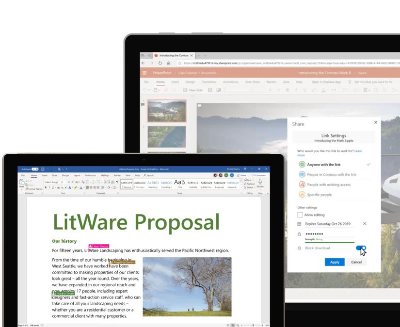 快速灵活地与组织内部或外部的任何人员展开协作。使用 Word、Excel 和 PowerPoint 在 Web、移动端和桌面之间安全地共享文件并实时展开协作。