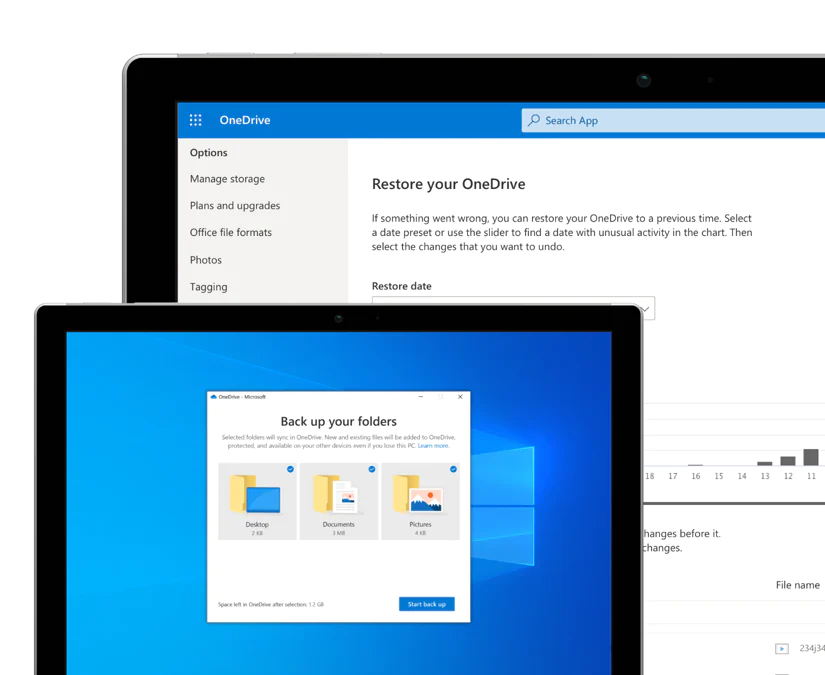 使用 OneDrive 进行备份并保护文件。你可以轻松恢复被意外删除或受到恶意攻击的文件,管理员可以管理安全性策略以帮助保护你的信息安全。